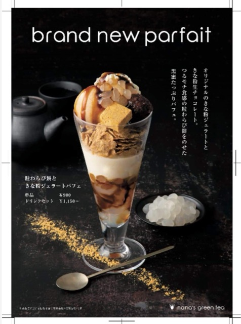 #わらび餅 #粒わらび餅ときな粉のジェラートパフェ #粒わらび餅ドリンク #モチラテ #抹茶モチラテ #ナナズグリーンティー #新メニュー #試食会 #きな粉 #きな粉スイーツ #つるモチ食感