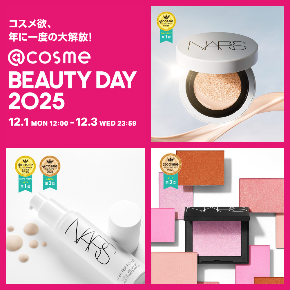 こんにちは。NARSブランド担当です。今年もついに12月が近づいてきました。待ちに待った@cosme BEAUTY DAYが、12月1日(月)よりス…
